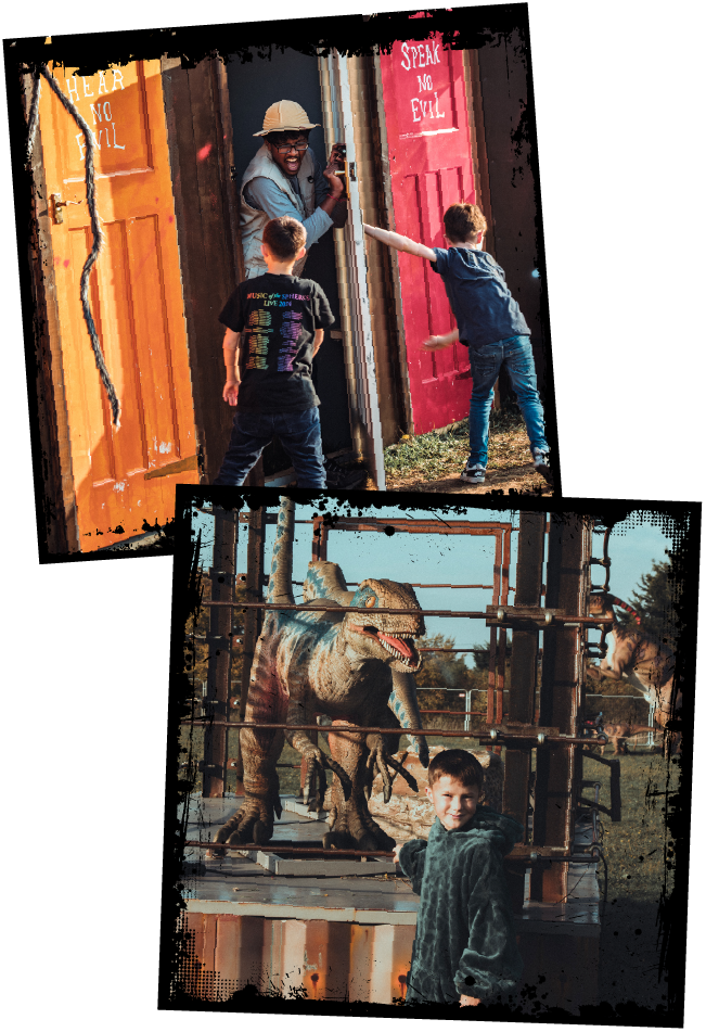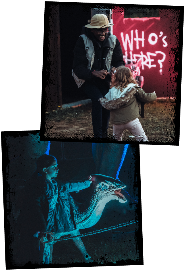 The trail features 39 life-sized animatronic dinosaurs that hiss, snarl, and growl realistically. Trick ‘n’ treat doors. Not for the faint-hearted. Stay alert. Stay together.